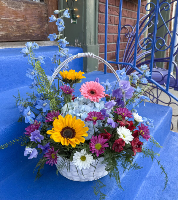 Although released and performed by Queen, this wonderful rock song was written by the band’s bass player, (John Deacon), for and about his wife. “In rain or shine, you’ve stood by me. I’m happy at home.”, are certainly lyrics that speak to those who know that moms stand by their families through it ALL. This basket of flowers has ALL the ‘color’ that lives take on, featuring blue hydrangea, sunflowers, mini gerbera daisies, sweet pea, alstroemeria, daisy poms, and light blue delphinium, and accented with plumosa fern and lepidium greens. Show Mom that she is the whole family’s BEST FRIEND!